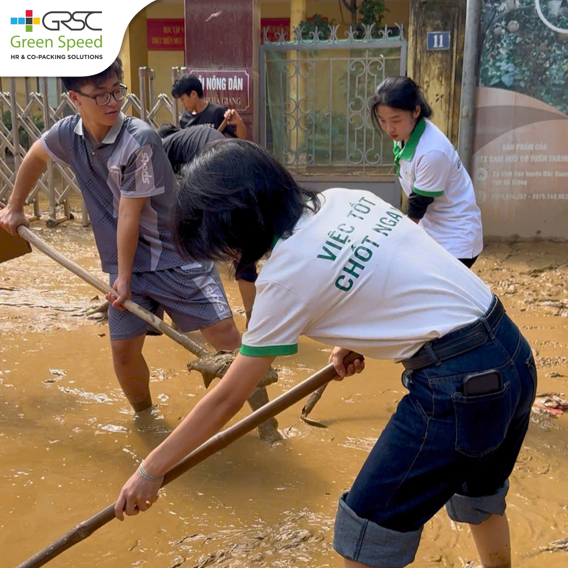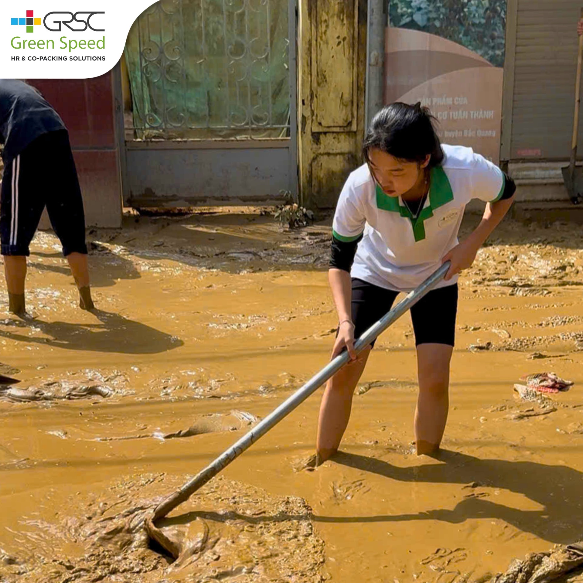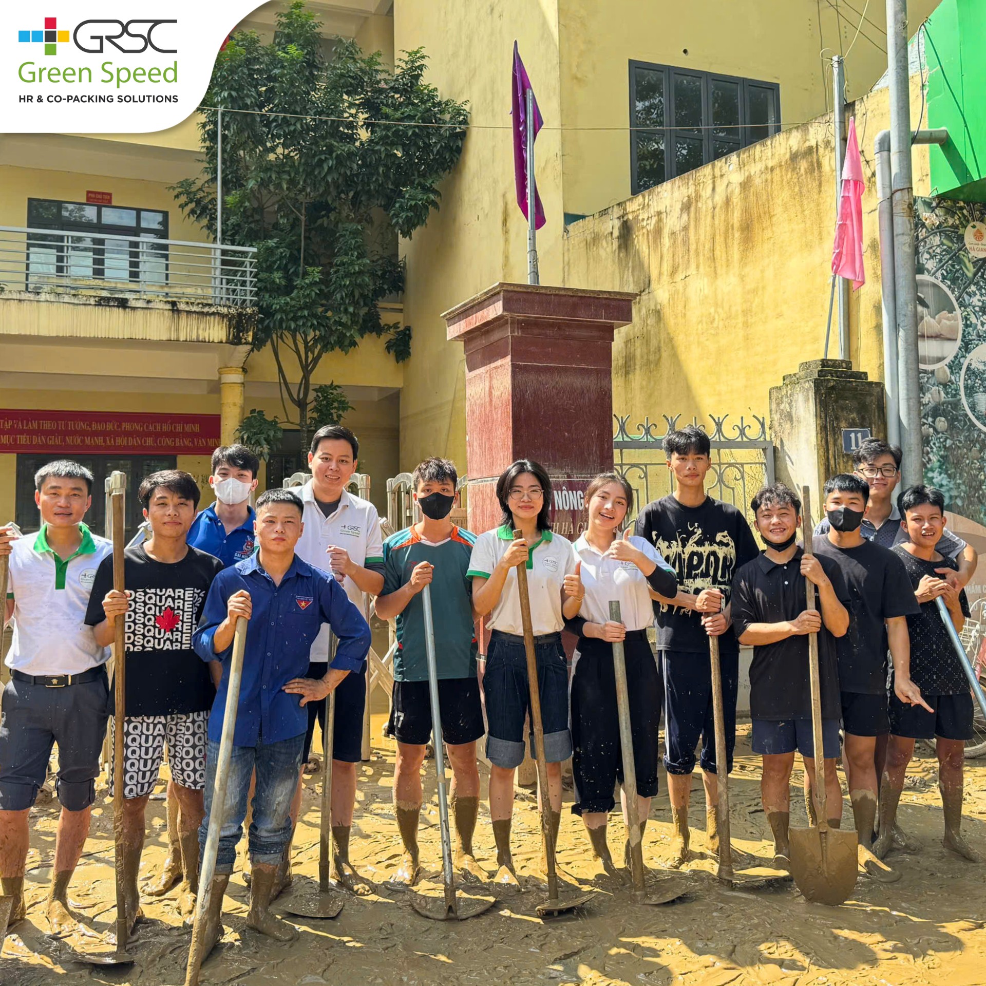 Thấu hiểu khó khăn của người dân, Green Speed đã nhanh chóng phối hợp cùng lực lượng tình nguyện địa phương, tổ chức dọn dẹp rác thải, khơi thông cống rãnh, vệ sinh khu dân cư và trường học, góp phần khôi phục môi trường sống cho người dân.